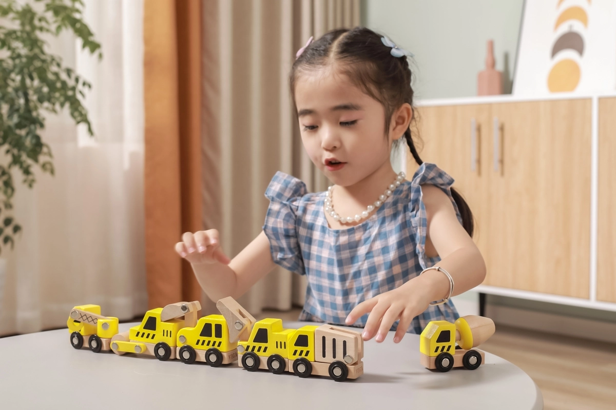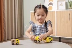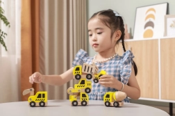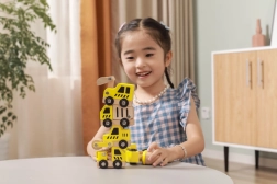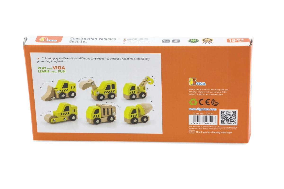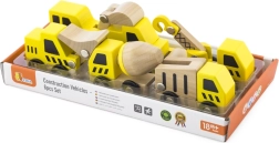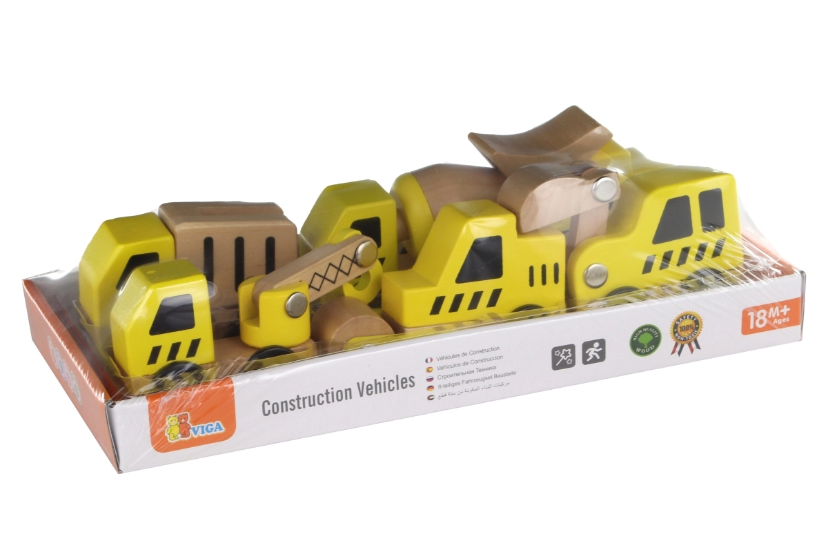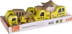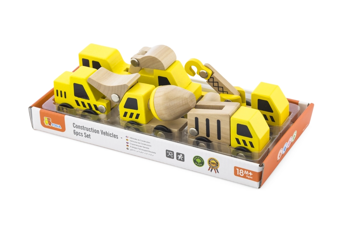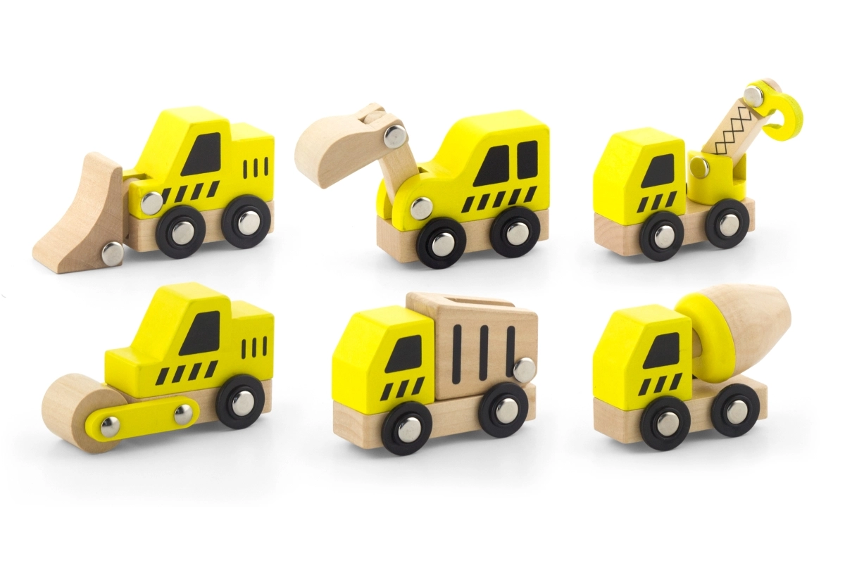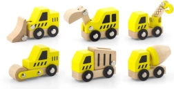 Šajā kvalitatīvajā komplektā ir 6 dažādi celtniecības transportlīdzekļi spilgti dzeltenā krāsā ar dabīga koka elementiem – ideāli pirmajiem “braucieniem” pa grīdu un spēlēm būvlaukumā. Pateicoties noapaļotām formām un izturīgai koka konstrukcijai, mašīnītes ir drošas un patīkamas taustei.