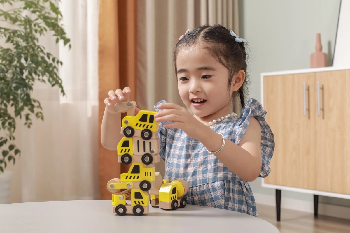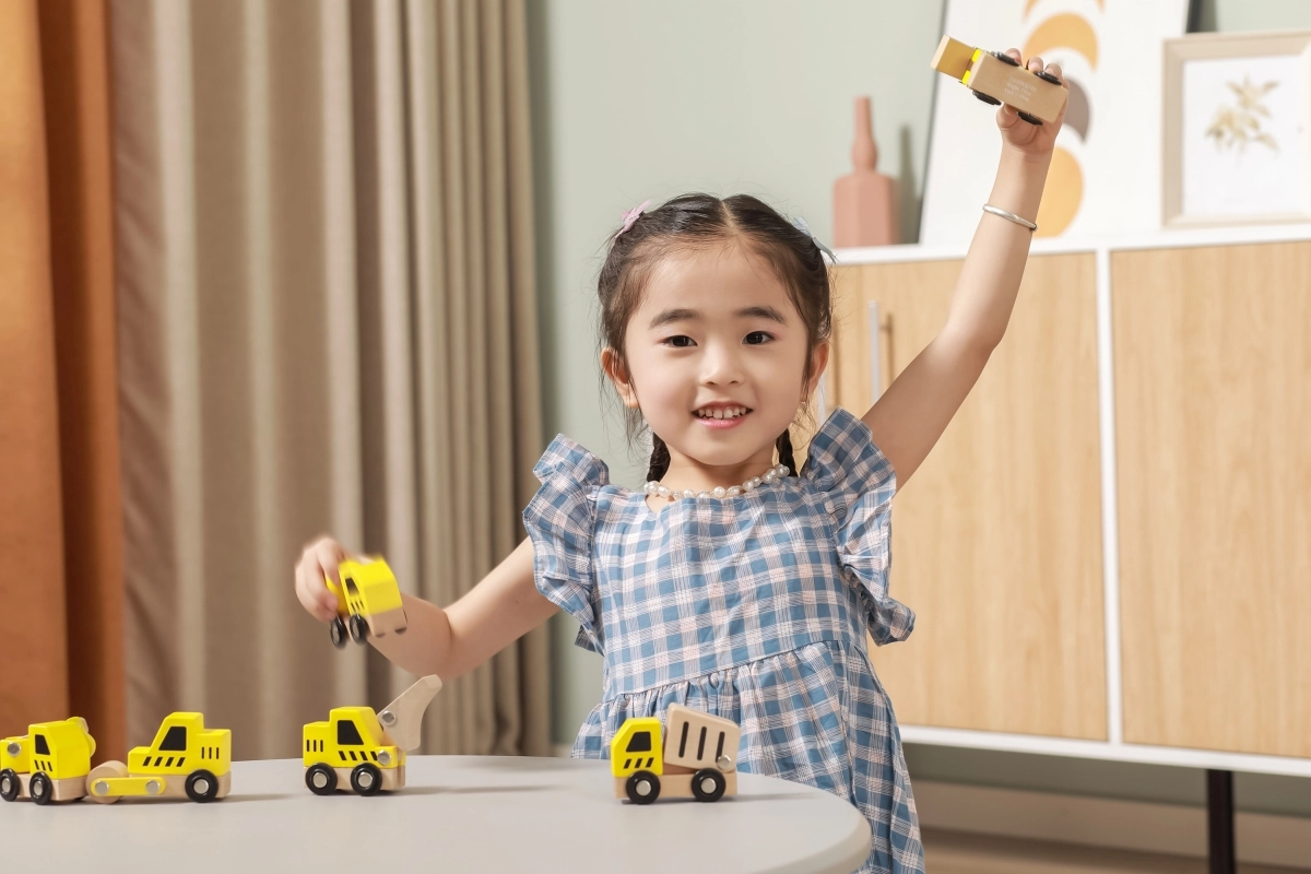 Katrai mašīnai ir funkcionējoši riteņi vienmērīgai ripināšanai, un atsevišķas detaļas attēlo kustīgus elementus (piem., kauss, maisītājs vai celtņa strēle), kas veicina dabisku zinātkāri un roku–acu koordinācijas attīstību.