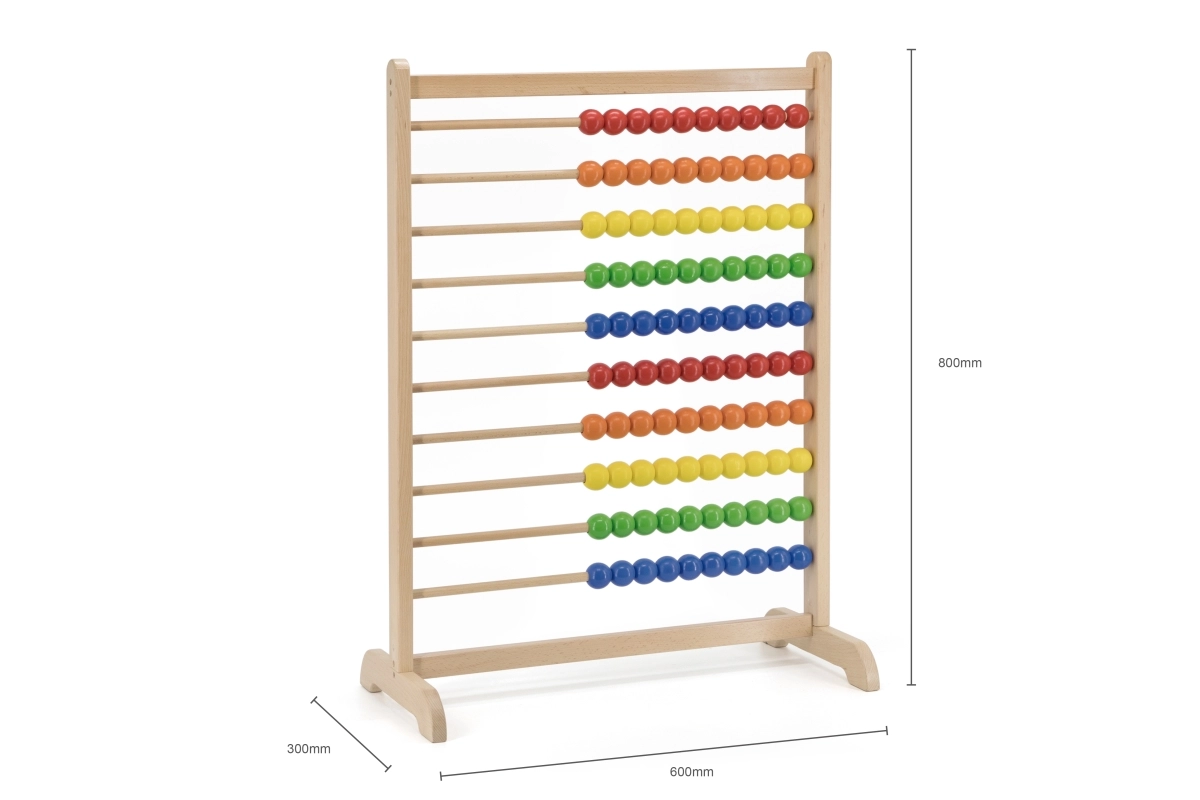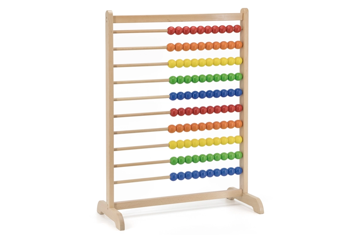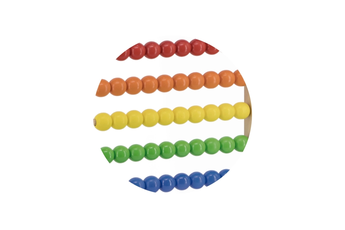 Katra rindā ir lodītes spilgtās krāsās, kas palīdz bērniem vieglāk saprast un saskaitīt. Šis vizuālais elements veicina arī radošumu un sīko motoriku.