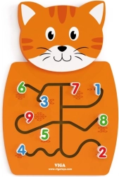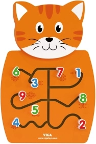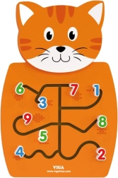 Koka kaķis ar labirintiem ciparu pārvietošanai un sīkās motorikas attīstīšanai.