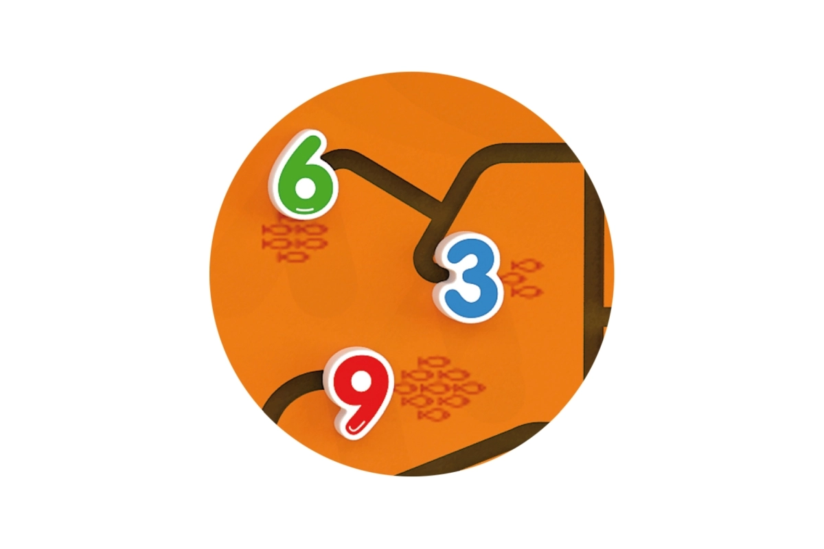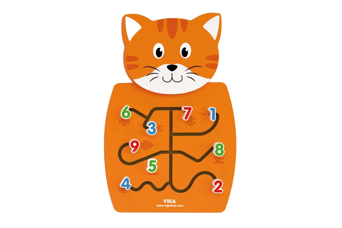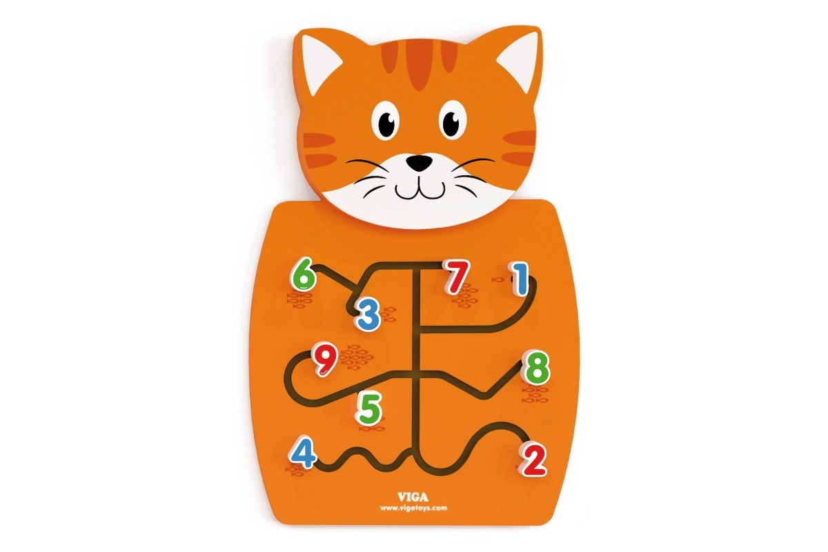 Šī interaktīvā rotaļlieta kaķa formā satur dažādi izgrieztus labirintus uz vēdera, kur bērniem jāvirza klucīši ar cipariem un jāsaskaņo tie ar attiecīgo attēloto zivtiņu skaitu. Tādējādi bērni apgūst matemātikas pamatus un loģisko domāšanu. Saskaņā ar Montessori principiem rotaļlieta veicina bērnu patstāvīgu problēmu risināšanu caur spēli.