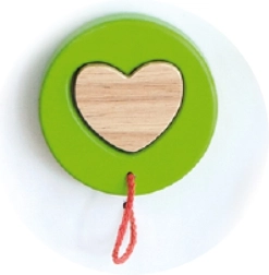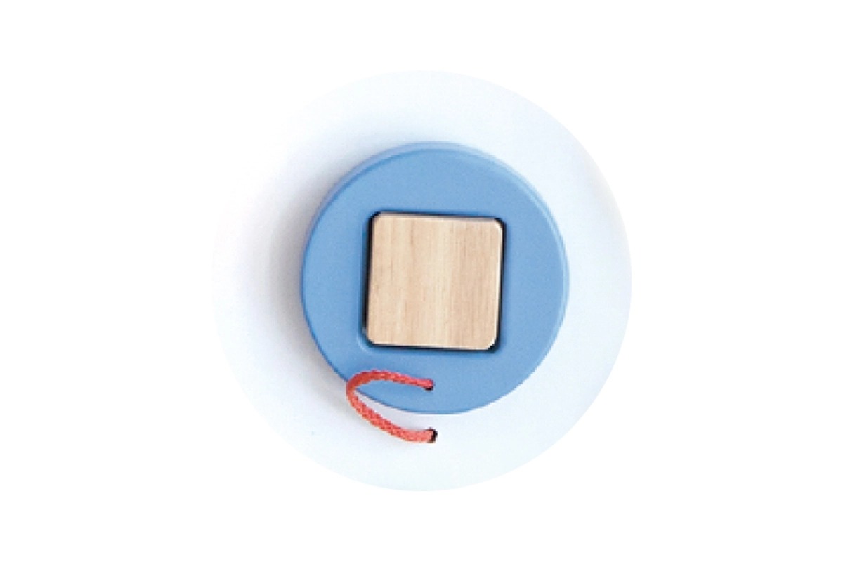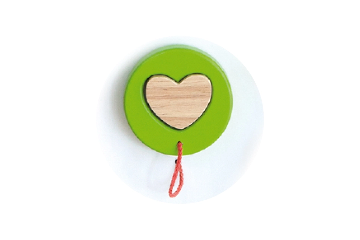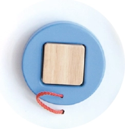 • krāsainas koka rotaļlietas, piestiprinātas pie auklas