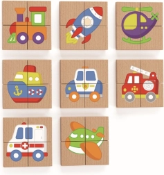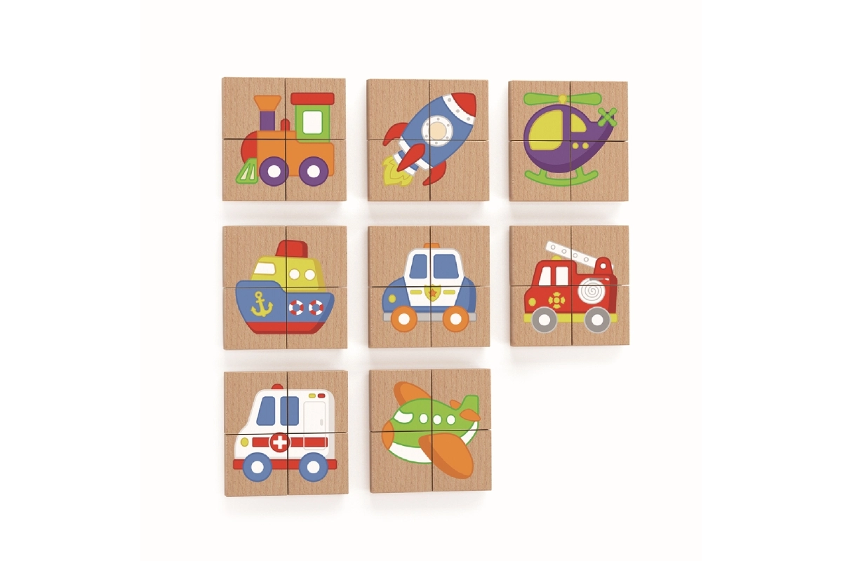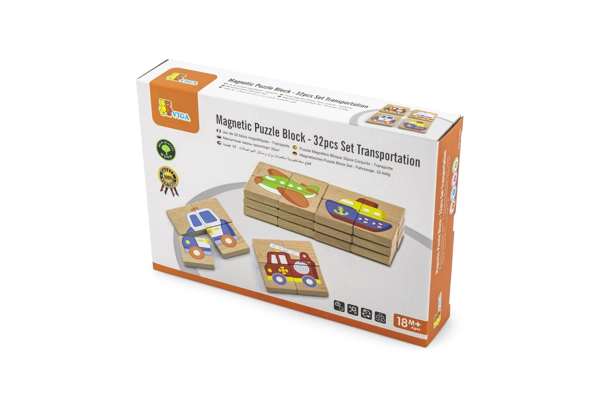 Šī aizraujošā magnētiskā rotaļlieta ļauj bērniem veidot attēlus no 4 blokiem, kas, savienoti kopā, veido pilnīgu transportlīdzekli. Tos var viegli piestiprināt pie tāfeles, padarot tos par attēla daļu vai par iedvesmu zīmēšanai. Augstas kvalitātes koksne un netoksiskas krāsas nodrošina, ka rotaļlieta ir pilnīgi droša bērniem.