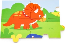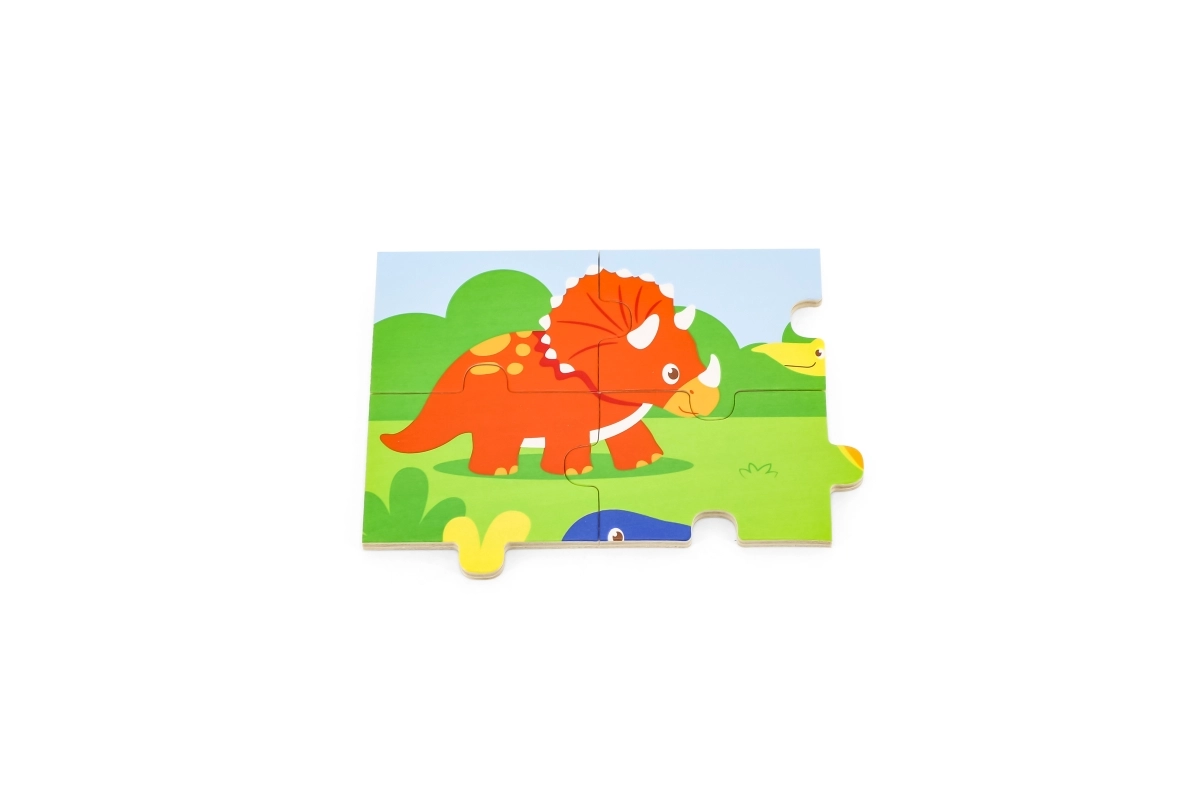 Jautrie dinozauri un pārskatāmie 16 gabaliņi būs pa spēkam bērniem jau no 24 mēnešiem. Liekot puzli, dabiski attīstās sīkā motorika, koncentrēšanās un formu un krāsu uztvere.