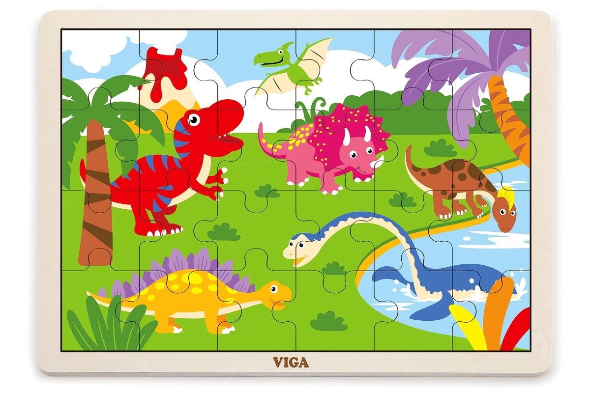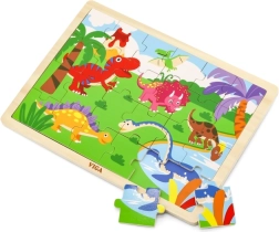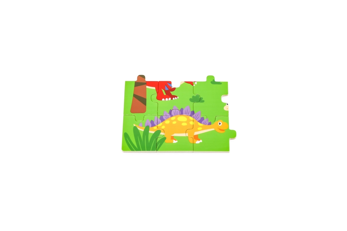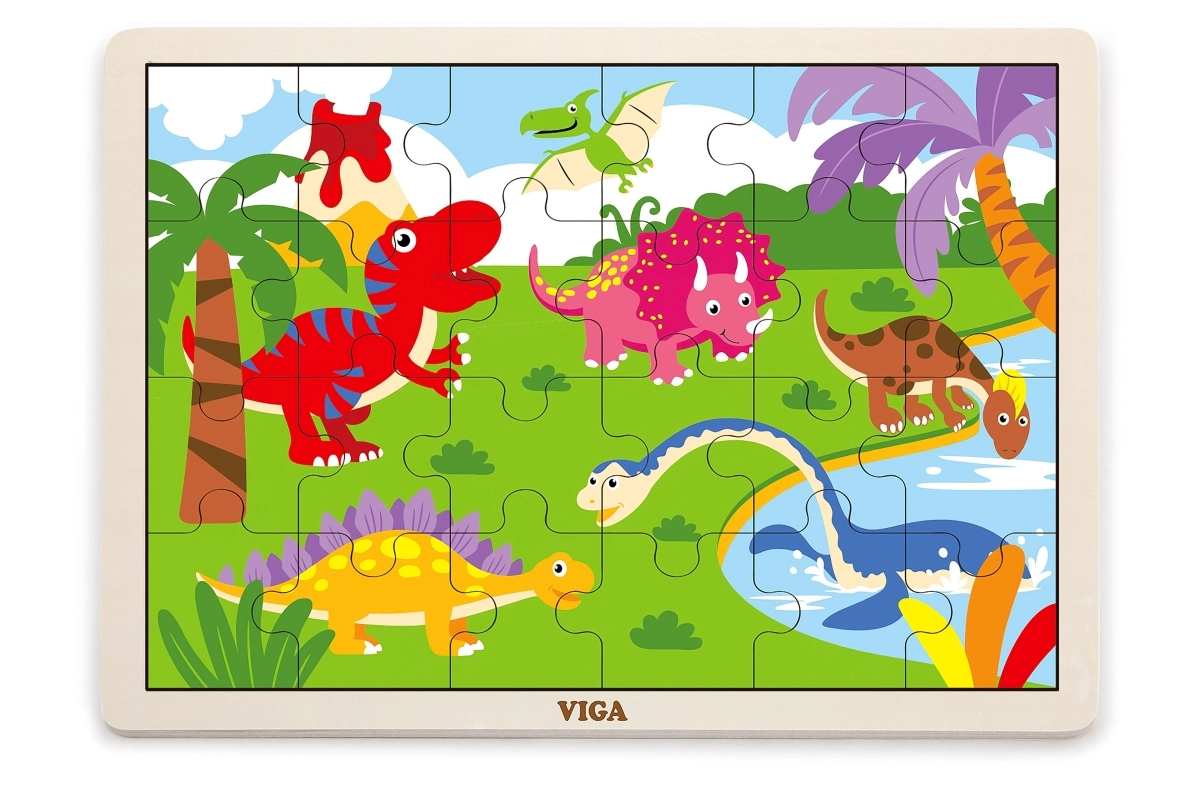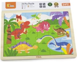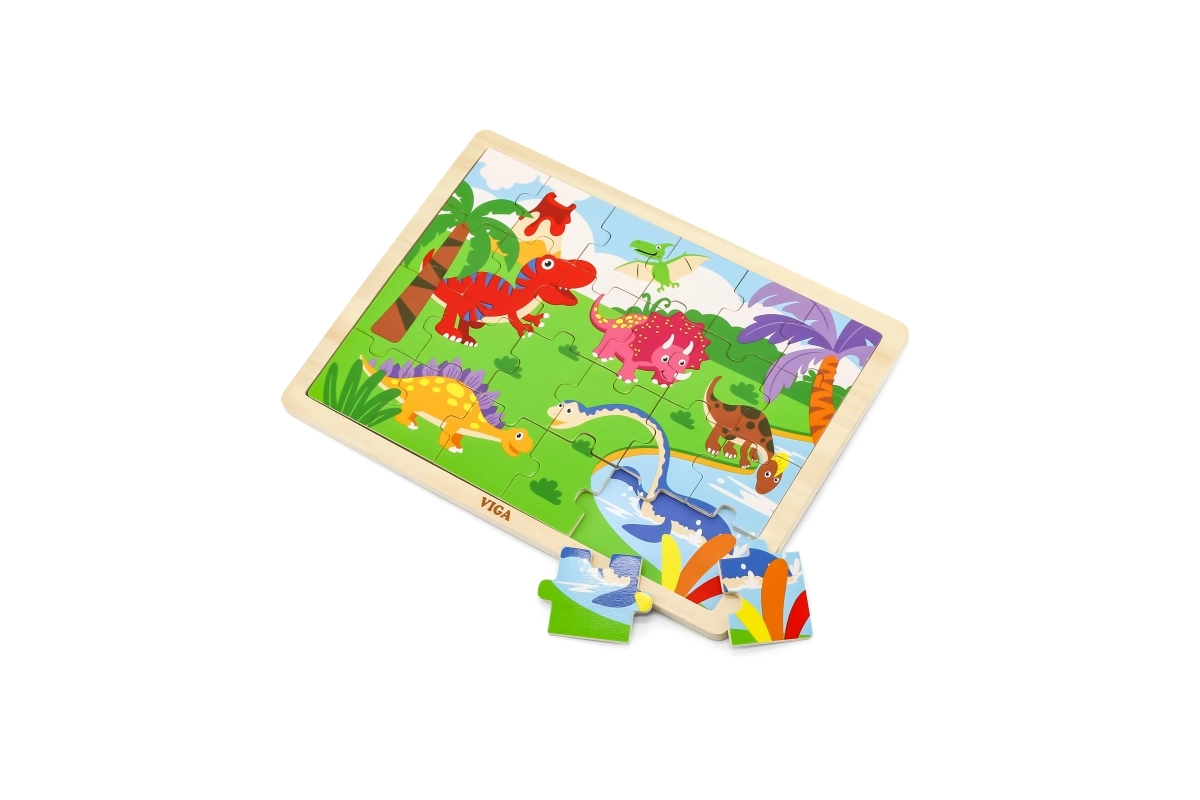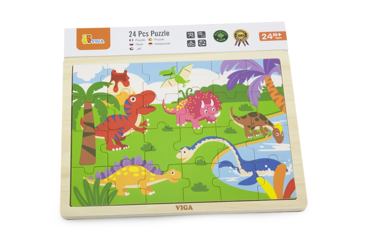 Koka puzle ar mīlīgu dinozauru motīvu iepriecinās visus mazos aizrautīgos pirmatnējās pasaules cienītājus. Pateicoties 24 gabaliņiem, puzle ir lieliska izvēle pirmajai patstāvīgajai likšanai, acu–roku koordinācijas un pacietības attīstīšanai. Kvalitatīvs izpildījums un gludas malas nodrošina drošu un patīkamu spēli.