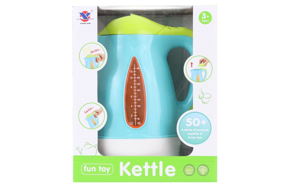 Izklaidējoša bērnu tējkanna ar baterijām piedāvā reālistisku mājas spēli – spīd, izdod skaņas un to var piepildīt ar ūdeni. Ideāli piemērota mazajiem pavāriem no 3 gadu vecuma. Barošanu nodrošina 3× AA baterijas (nav iekļautas).