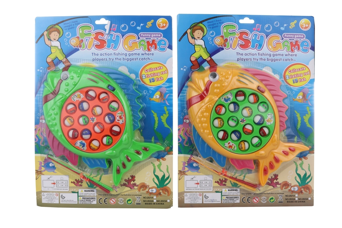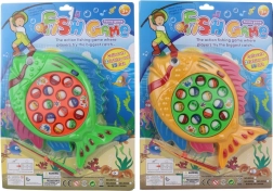 Izklaidējoša ģimenes spēle bērniem no 3 gadu vecuma: rotējošās zivtiņas atver mutītes, un spēlētāji tās ķer ar diviem makšķeru kātiem. Attīsta motoriku, pacietību un reakciju. Liels spēļu šķīvis ar rotāciju, barošana ar 2× AA (nav iekļautas).