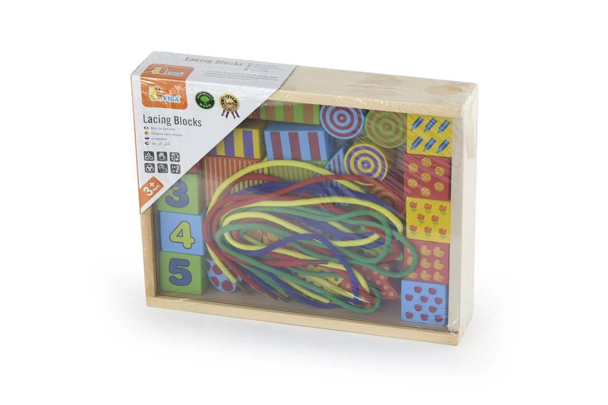 Atklājiet radošu rotaļāšanos ar VIGA koka vēršanas komplektu – kastīti, kas pilna ar košām formām, ko vērt uz aukliņām kā krelles. Attīsta sīko motoriku, acs–roka koordināciju un krāsu un formu apguvi. Detalizēti izstrādātas kvalitatīva koka daļas ar netoksiskām krāsām un lielu izmēru drošai satveršanai.