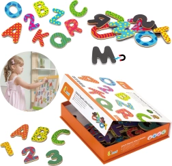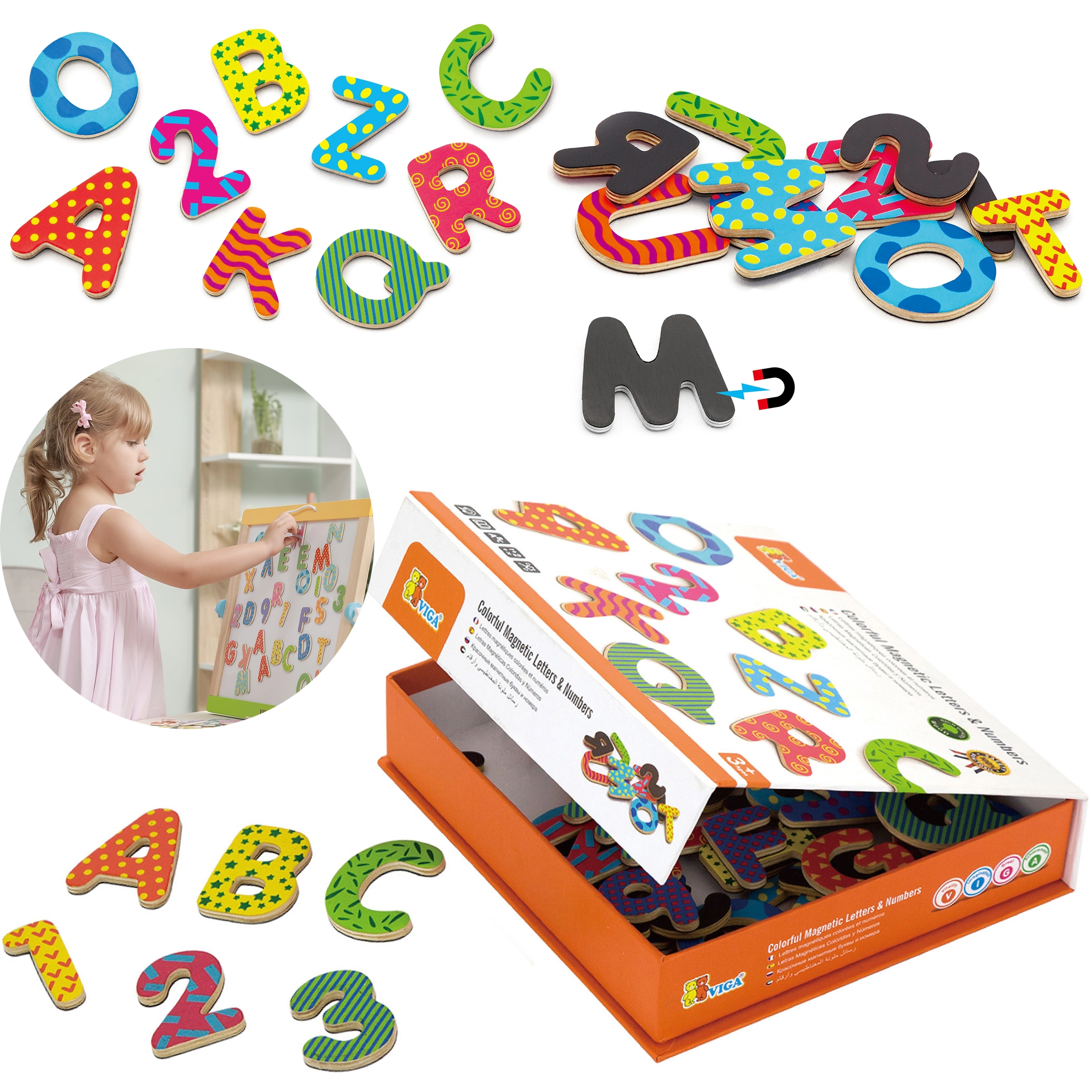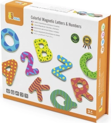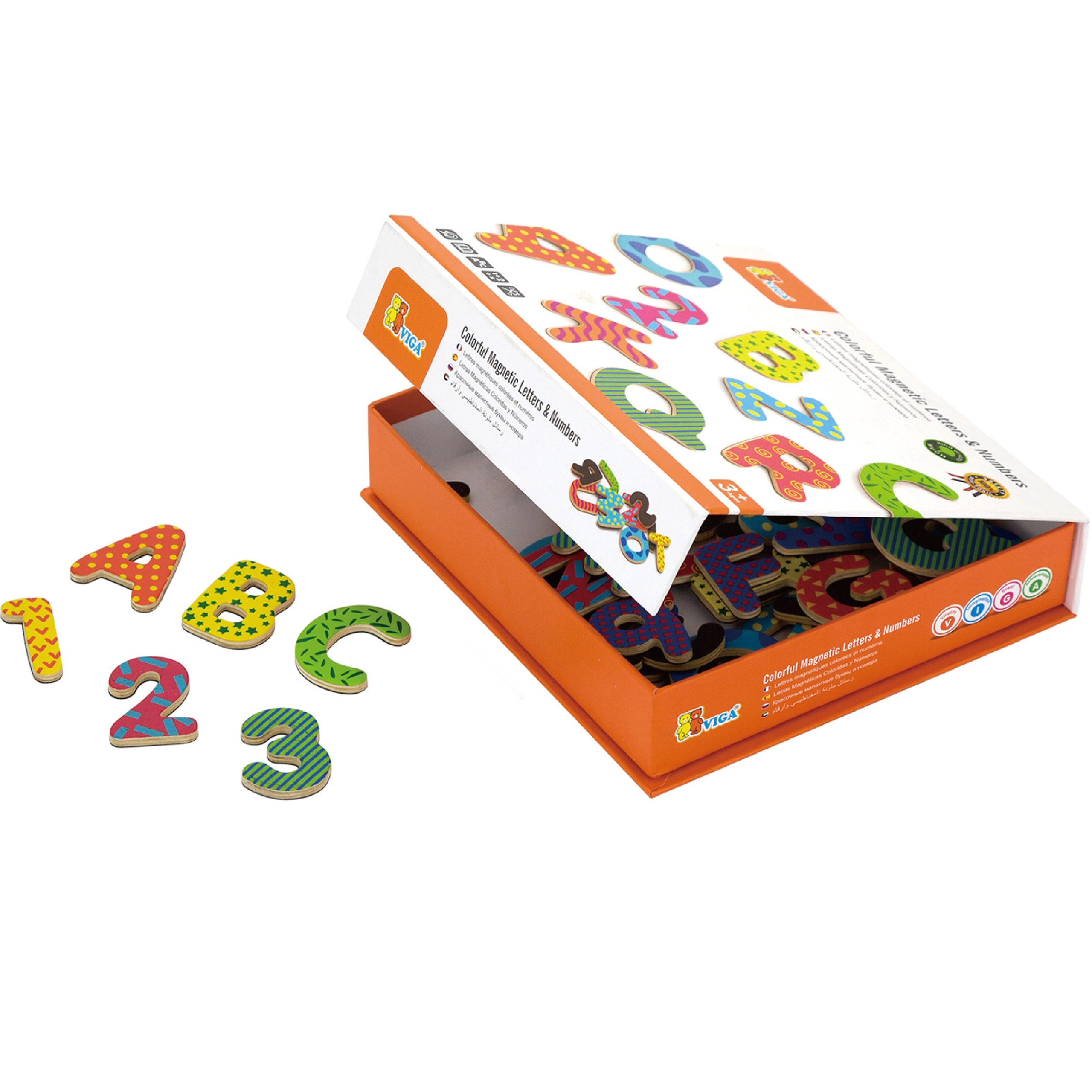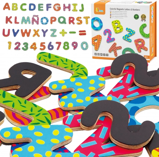 Atklājiet jautru veidu, kā mācīt bērniem alfabētu un skaitīšanu: koka magnētisko burtu un ciparu komplekts VIGA piedāvā 77 detaļas vārdu, teikumu un vienkāršu piemēru veidošanai. Krāsainie elementi veicina mācīšanos rotaļājoties, attīsta sīko motoriku un radošumu. Detaļas viegli pieķeras pie magnētiskām virsmām (tāfeles, ledusskapis) un ir izgatavotas no lakota koka ar netoksiskām krāsām.