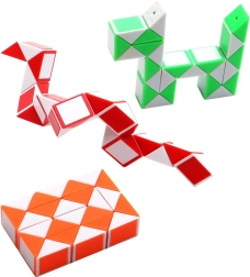 Atklājiet radošu galvas lauzīklu, kas rotaļīgā veidā attīsta loģiku, strateg̊iju un smalko motoriku. Maģiskā čūskas kuba rotaļlieta 26 cm garumā sastāv no rotējošiem trīsstūrveida posmiem, kurus var griezt par 360° un veidot neskaitāmas oriģinālas formas un rakstus. Ideāli piemērota kā antistresa fidget rotaļlieta un gudra izklaide ceļā. Iepakojumā 1 gab., krāsa tiek piegādāta jauktā veidā atbilstoši noliktavas atlikumiem.