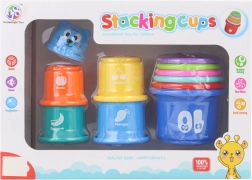 Plastmasas saliekamo kausiņu komplekts ir ideāla rotaļlieta prasmju attīstīšanai bērniem no 6 mēnešu vecuma. Dažādo krāsu un izmēru dēļ bērni apgūst šķirošanas, salīdzināšanas un būvēšanas principus. Kausiņi ir viegli, izturīgi un viegli kopjami.