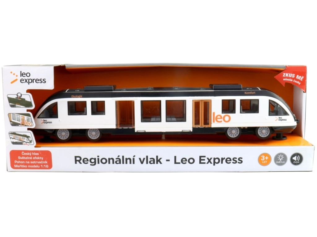 Dodieties ar bērniem izbraucienā pa sliedēm ar reālistisku reģionālo vilcienu LEO EXPRESS. Rotaļlieta piedāvā paziņojumus čehu valodā, gaismas efektus un inerces piedziņu plūdenai kustībai bez sliežu ceļa. Iekļautas AG13 baterijas, lai varētu sākt uzreiz. Piemērots bērniem no 3 gadu vecuma.