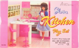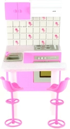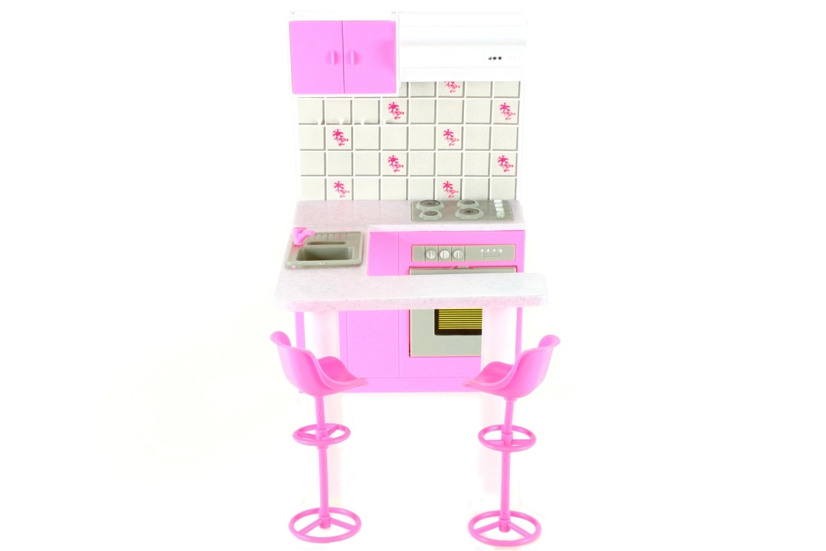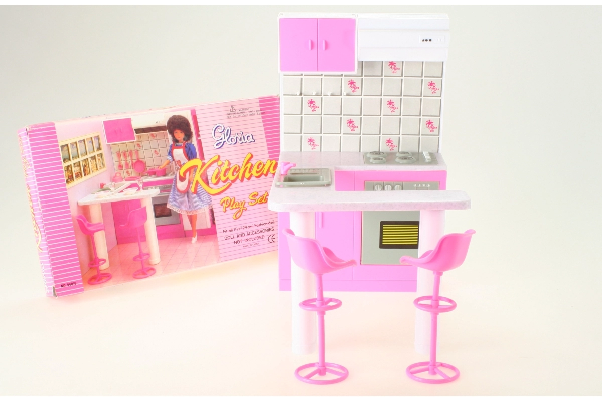 Stilīgs Glorie leļļu virtuves komplekts pārvērtīs jebkuru bērnu istabu mazā kulinārijas valstībā. Tas piedāvā virtuves stūrīti ar atveramu krāsni (dekoratīva), izlietni un plīti (nedarbojas), kā arī ēdamgaldu ar diviem bāra krēsliņiem. Ideāli piemērots bērnu radošai spēlei no 3 gadu vecuma.