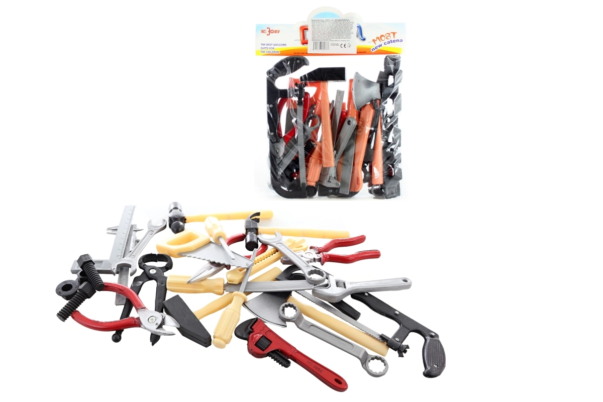 Iepakojumā atradīsiet dažādus instrumentus reālistiskai spēlei: zāģīti, āmuriņu, knaibles, cirvīti, skrūvgriežus, atslēgas, skrūves, vīli, cauruļu atslēgu un citus piederumus. Kompaktie iepakojuma izmēri ļauj to ērti glabāt un pārnēsāt.