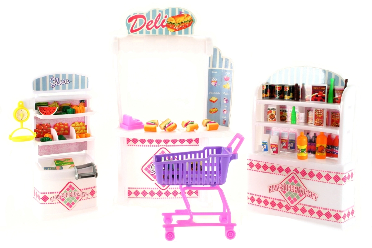 • Bagātīgs aprīkojums – plaukti, kase, grozs un daudz pārtikas priekšmetu reālistiskai izklaidei.