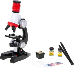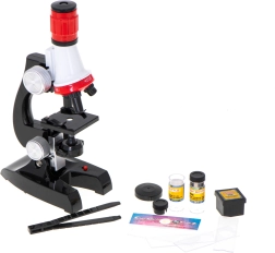 Komplektā ietilpst dažādi piederumi, piemēram, pincete, gatavs preparāts uz priekšmetstikliņa, četri priekšmetstikliņi savu paraugu sagatavošanai, divas mēģenes un uzlīmes. Tas viss nodrošina netraucētu mikro pasaules izpēti un veicina bērnu zinātkāri un izziņas prasmes.