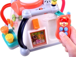 Stūre ar skaņas signālu un motora skaņu, zobrati ar melodijām un gaismām, izvelkams mikrofons ar skaļuma regulēšanu, siena ar āmuriņu un bumbiņas tuneli, telefons ar pogām un attēlu pārslēgšanu, spīdošs bungas tauris, krellīšu labirinti