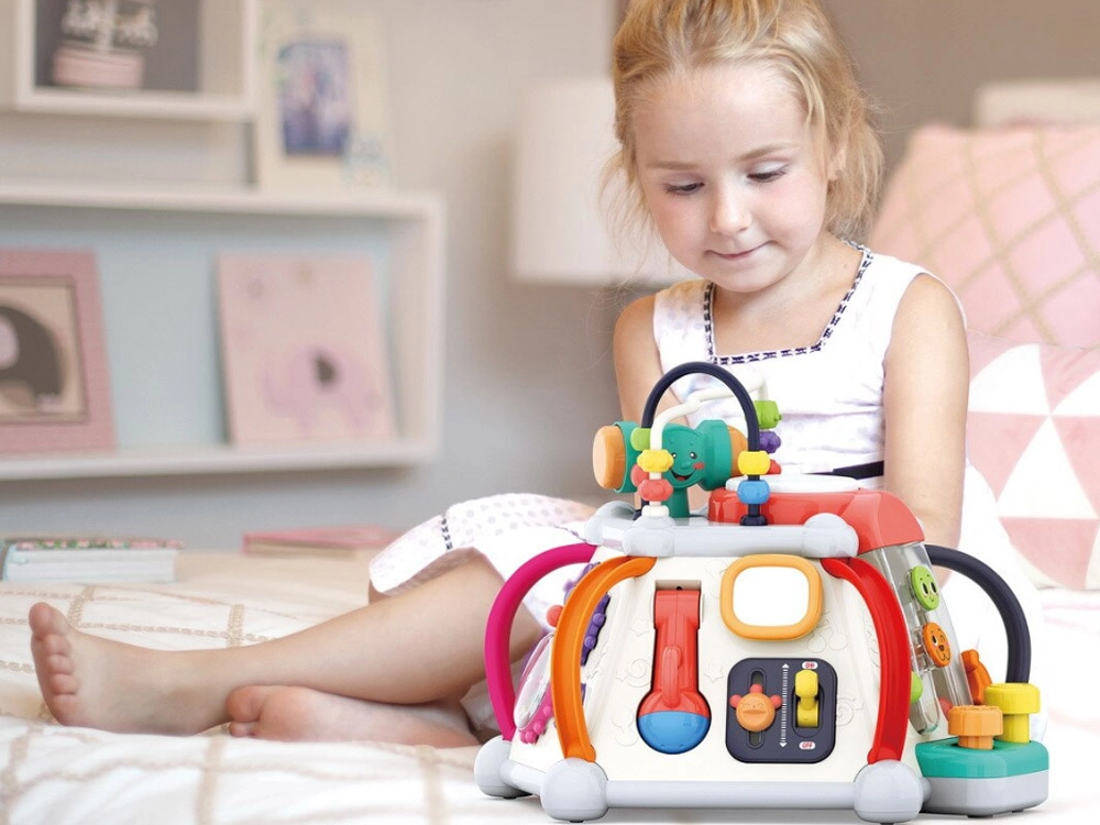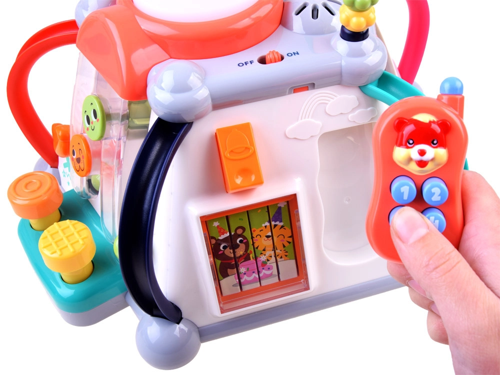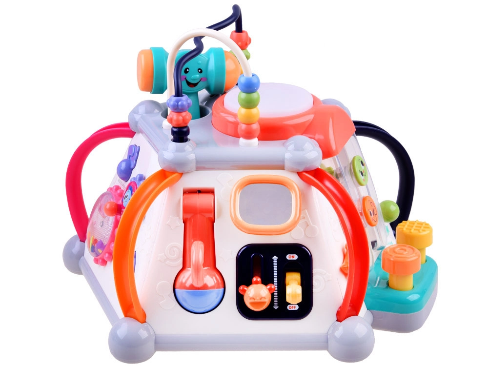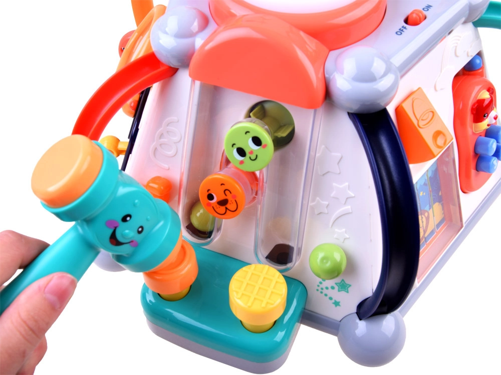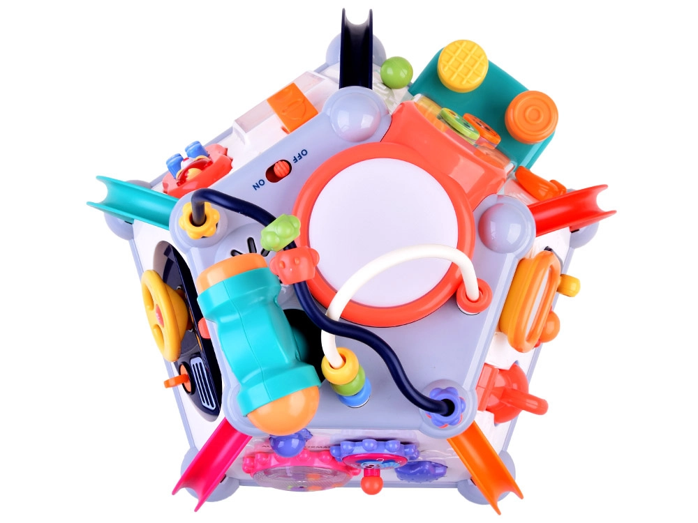 HOLA multikubs piedāvā bagātīgu aktivitāšu klāstu pašiem mazākajiem. Katra siena sniedz citu rotaļu veidu – no autiņa vadīšanas līdz zobratiem ar gaismām un melodijām, kā arī mikrofons ar apgaismotu “televizoru”. Augšējā puse slēpj krellīšu labirintus, spīdošu bungas tauri un vietu āmuriņa novietošanai. Viss ir veidots mazām bērnu rociņām un drošai atklāšanai.