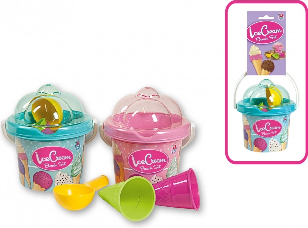 Burvīgs bērnu smilšu komplekts saldējuma stilā iepriecinās ikvienu mazo būvētāju. Komplektā iekļauts spainītis ar vāku pohāra formā, saldējuma bumbiņu veidotājs un 2 vafeļu konusi. Ražots Itālijā no kvalitatīvas plastmasas, ideāli piemērots bērniem no 12 mēnešiem. Viegls, kompakts un lieliski noder smilškastē un pludmalē.
