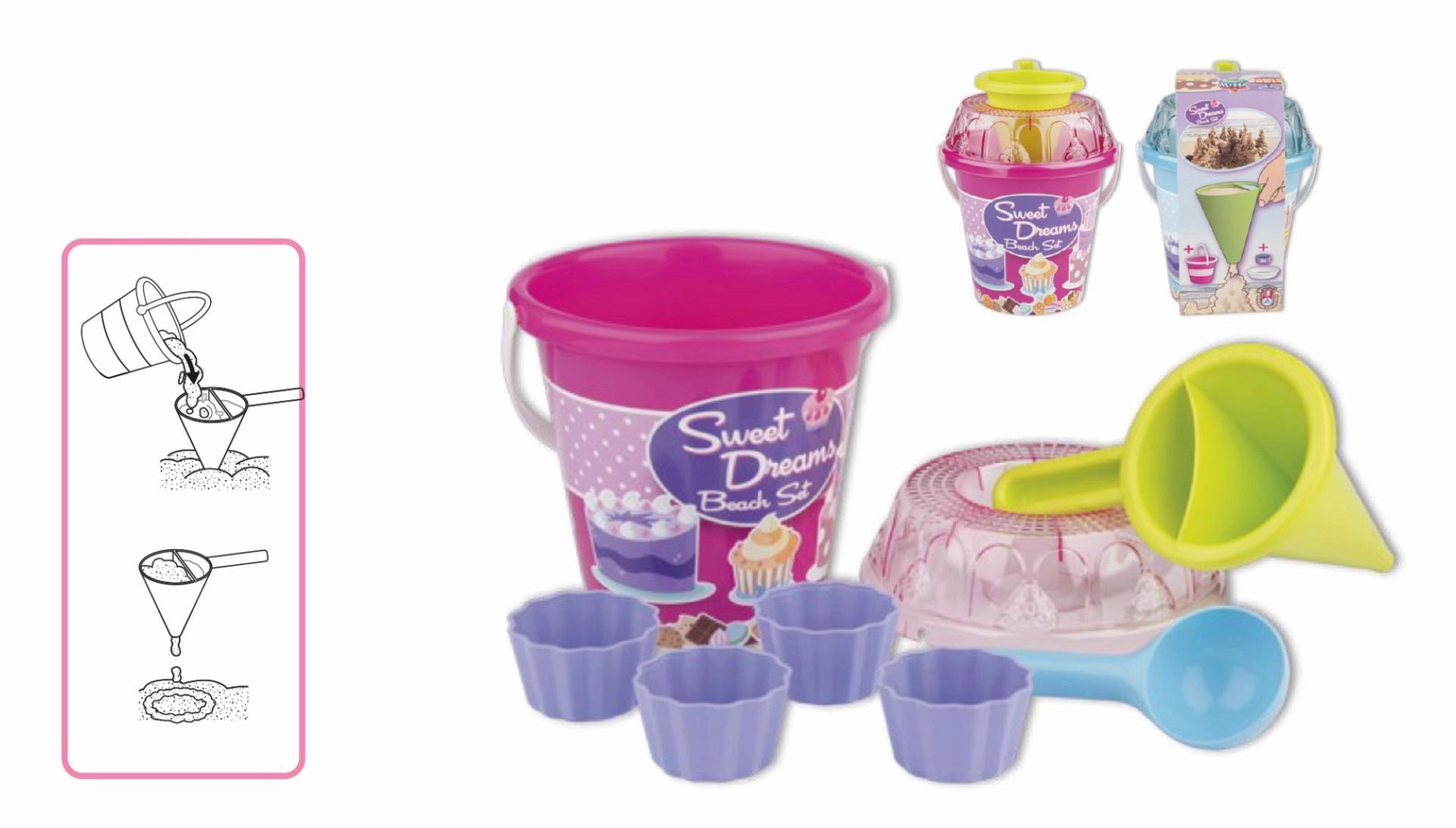 Šis vidēja izmēra Androni smilšu komplekts piedāvā visu nepieciešamo radošai spēlei smilšukastē un pie ūdens. Dekorēšanas piltuve ļauj bērniem kombinēt smiltis ar ūdeni un veidot oriģinālus “mafinus” un citus darinājumus, savukārt babka formas veidnes un kūkas formas caurspīdīgais siets attīsta iztēli un sīko motoriku.