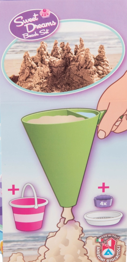 Izklaidējošs 8 daļu smilšu komplekts no Androni iepriecinās mazos būvniekus no 12 mēnešu vecuma. Komplektā ir spainītis, caurspīdīgs kūkas formas siets, lāpstiņa, 4 veidnes un dekorēšanas piltuve smilšu un ūdens jaukšanai. Pateicoties kvalitatīvam itāļu izpildījumam no izturīgas plastmasas, bērni baudīs stundām ilgu veidošanu un sīko motoriku attīstošas aktivitātes. Lieliska izvēle rotaļu laukumam un pludmalei.