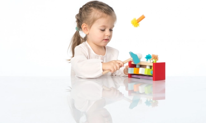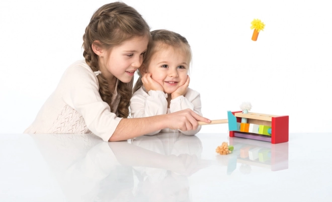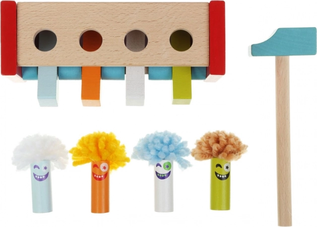 Šī kvalitatīvā koka rotaļlieta bērniem sniedz atklājumu prieku par cēloņsakarību. Katrs sitiens ar āmuriņu iedarbina mehānismu, un jautrais klauns izlec – vienkārša, bet aizraujoša darbība, kas motivē atkārtot un uzlabot prasmes.