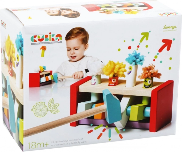 Koka āmuriņspēle ar izlecošiem klauniem no zīmola CUBIKA pārvērš rotaļas jautrā mācīšanās procesā. Bērni ar āmuriņu sit pa krāsainajiem elementiem un vēro, kā klauni izlec – tas lieliski attīsta sīko motoriku, acu–roku koordināciju un loģisko domāšanu. Izgatavota no kļavas un dižskābarža, ar drošām ūdens bāzes krāsām un Eiropas ražošanu.