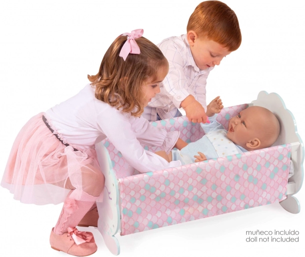 Mīlīgs koka leļļu šūpulītis no kolekcijas OCEAN FANTASY apbur ar maigiem pasteļtoņiem un mazās jūras fejas motīvu. Piedāvā kvalitatīvu izpildījumu, stabilu konstrukciju un spāņu dizainu. Komplektā ir rozā spilventiņš, kas nodrošina lellītei papildu komfortu. Ideāls papildinājums meiteņu istabai radošām spēlēm un rūpēm par lellēm.
