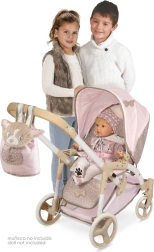 Burvīgie ratiņi lellēm rozā‑bēšos toņos apvieno lielisku dizainu un funkcionalitāti. Pateicoties regulējamai kulbiņai, ko var viegli pārveidot par sporta sēdekli, bērni baudīs reālistiskāku spēli. Komplektā ir arī pārnēsājamā soma lellei ar maigu samta DIDI izšuvumu un praktisku aizsargklapi pret caurvēju.