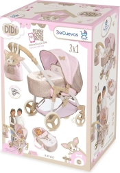 Stilīgi bērnu ratiņi lellēm 3 vienā no maigas kolekcijas ar kucēna DIDI motīvu iepriecinās katru mazo māmiņu. Tie piedāvā regulējamu kulbiņu un sporta sēdekli, pārnēsājamo somu ar mīlīgu izšuvumu, augstumā regulējamu rokturi līdz pat 80 cm un pagriežamus priekšējos ritenīšus ērtai vadīšanai. Praktiskais lielais grozs, trīs punktu josta un kvalitatīvs Spānijas izcelsmes metāla, plastmasas un tekstila apvienojums nodrošina drošu un aizraujošu rotaļu.