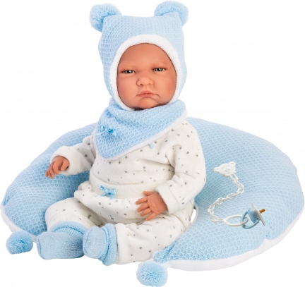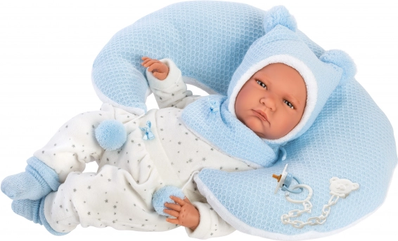 Sniedziet savai lellītei stilu un komfortu ar šo 5 daļu apģērbu komplektu lellēm NEW BORN LLORENS 40–42 cm. Komplektā ir mīksts barošanas spilvens, saskaņots zilbalts dizains un dāvanu iesaiņojums. Ražots Spānijā, piemērots no 3 gadu vecuma.
