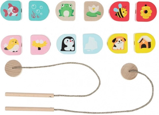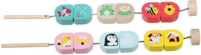 Vēršana uz auklas ar koka stienīti stiprina pirkstiņus, uzlabo acu–roku koordināciju un pacietību. Lieliska sagatavošana rakstīšanai.