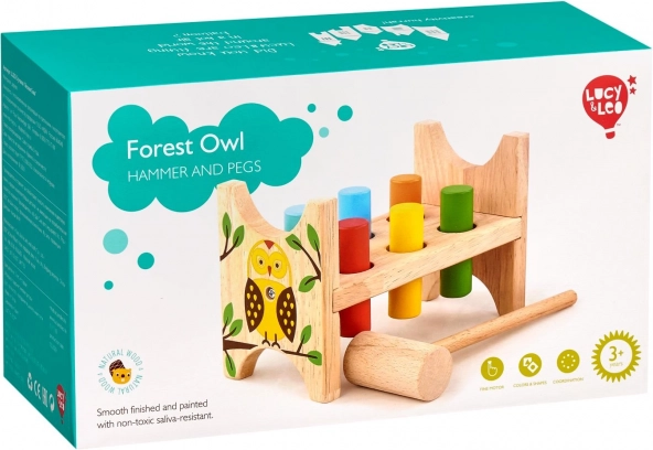 Izklaidējošs un izturīgs koka klauvējamais komplekts ar pūcītes motīvu no Lucy & Leo attīsta sīko motoriku, acu–roku koordināciju, un komplektā ir āmuriņš un krāsaini tapoņi. Kad visi tapoņi ir iesisti, pietiek statīvu apgriezt, un spēle var turpināties no jauna.