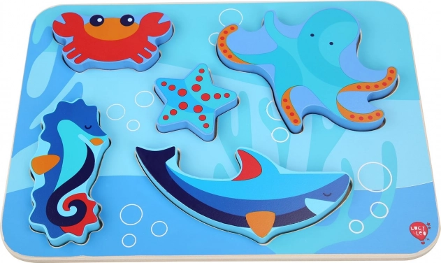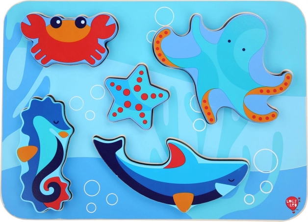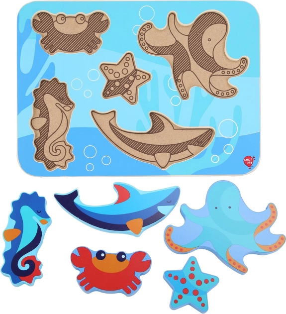 Atklājiet jūras pasaules burvību ar LUCY & LEO koka puzli. Komplektā ir 6 lielas jūras dzīvnieku figūras, ko bērni viegli satver un ievieto pareizajos iedobumos. Gluds apstrādājums, netoksiskas krāsas un izturīga koka konstrukcija veicina sīko motoriku, roku–acu koordināciju un formu atpazīšanu. Ideāli piemērota bērniem no 3 gadu vecuma.