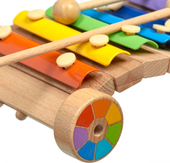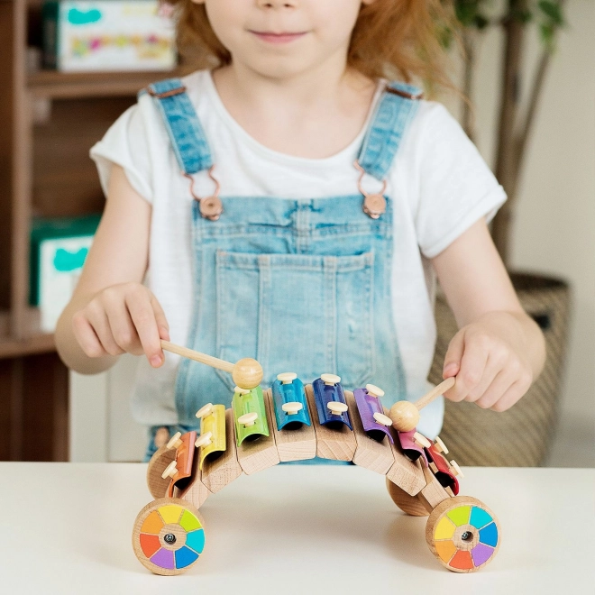 Varavīksnes koka ksilofons ar riteņiem LUCY & LEO