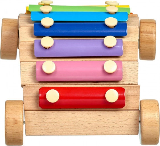 Koka šasija ar riteņiem ļauj ksilofonu vilkt vai stumt, padarot muzicēšanas apguvi vēl aizraujošāku.