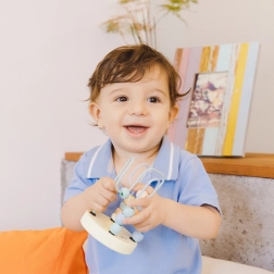Rotaļlieta ir ideāla bērniem vecākiem par 12 mēnešiem, nodrošinot lielisku sākumu motorikas prasmju attīstībai.