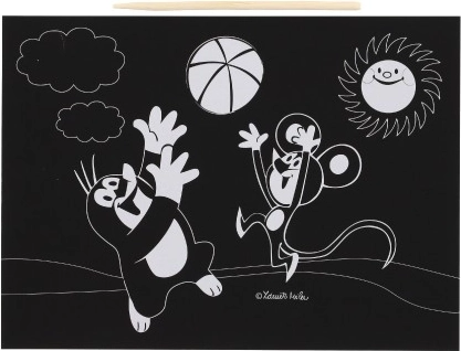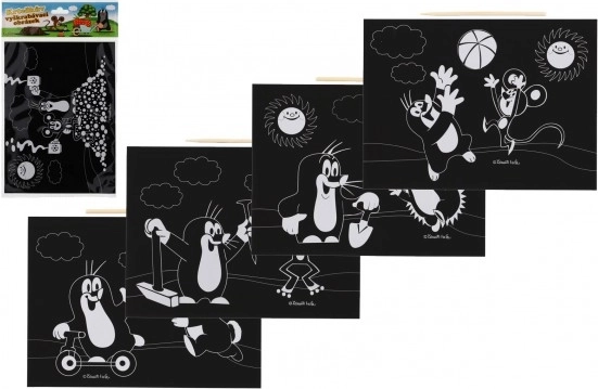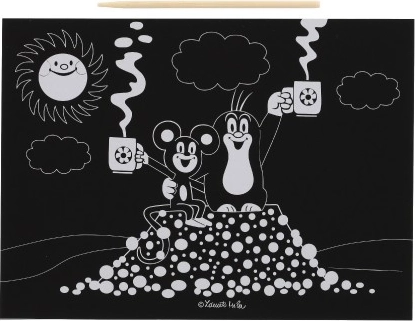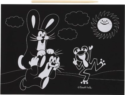 Izskrāpējot atsedzat krāsainus iemīļoto tēliņu motīvus, kas rosina iztēli un radošumu.