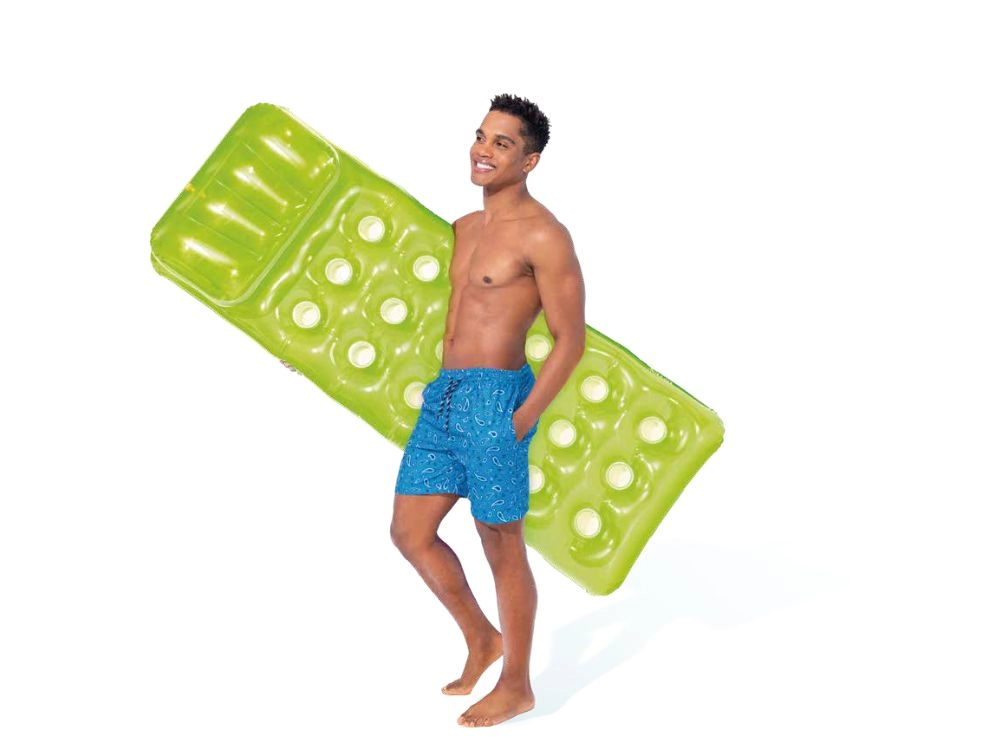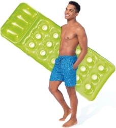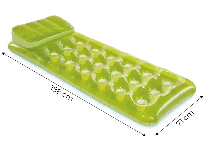Izbaudiet vasaru pilnā mērā ar INtex uzpūšamo matraci, kura izmēri ir 188 × 71 cm un svaigi zaļā krāsā. Pateicoties stabilajai COLI-BEAM konstrukcijai, divām gaisa kamerām un izturīgam PVC, tas piedāvā izcilu stabilitāti, ērti gulēt un ilgu kalpošanas laiku. Ideāli piemērots baseinam, ezeram un jūrai, ar nestspēju līdz 100 kg un komplektā iekļautu remonta ielāpu.