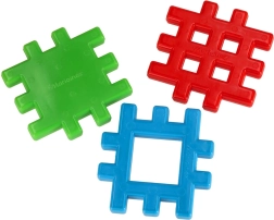 Kluči aptuveni 10,5 × 10,5 cm izmērā bērniem ir viegli satverami un droši savienojami. Ideāls pirmais konstruktors pirmsskolniekiem.