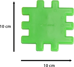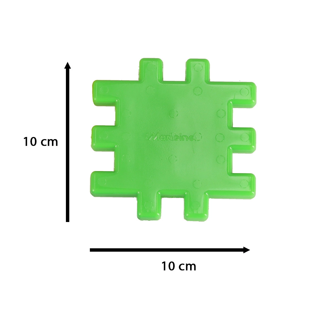 Detaļas ar izmēru aptuveni 10,5 × 10,5 cm un režģveida fiksatoru ir ērti satveramas un droši savienojamas – perfekti mazām rociņām no 2 gadu vecuma.