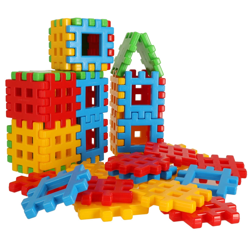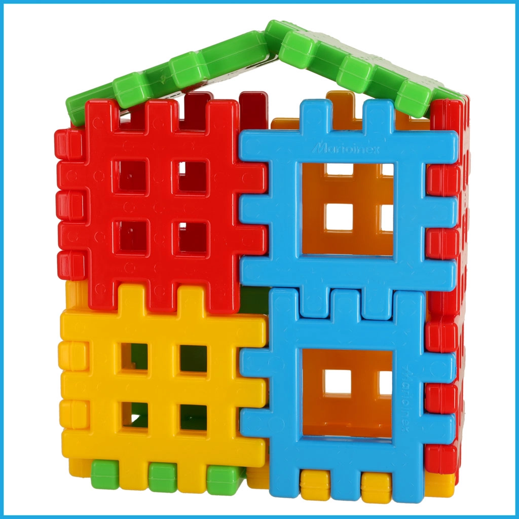 Liels elementu skaits ļauj bērniem celt augstākus torņus, platākas mājas un sarežģītākus modeļus. Ideāli brāļiem un māsām, kā arī grupu spēlei.