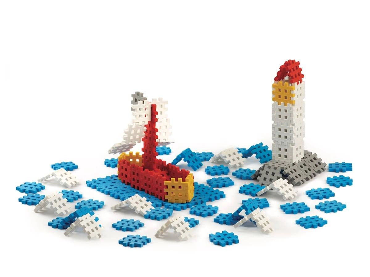 Konstruktoru detaļas ir izgatavotas no elastīga un droša materiāla, kas ir piemērots mazām bērnu rokām.