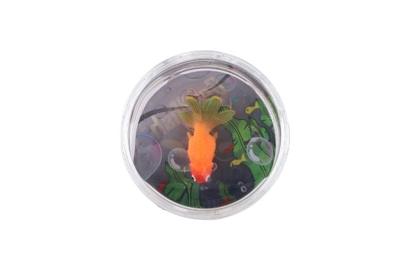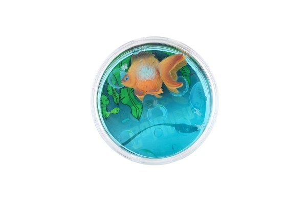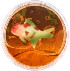 Šīs caurspīdīgās gļotas satur mazu zivtiņu, kas izskatās kā dzīva. Komplektā ir kompakta kastīte, kas ērti ievietojas uz galda, skapī vai plauktā.