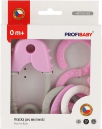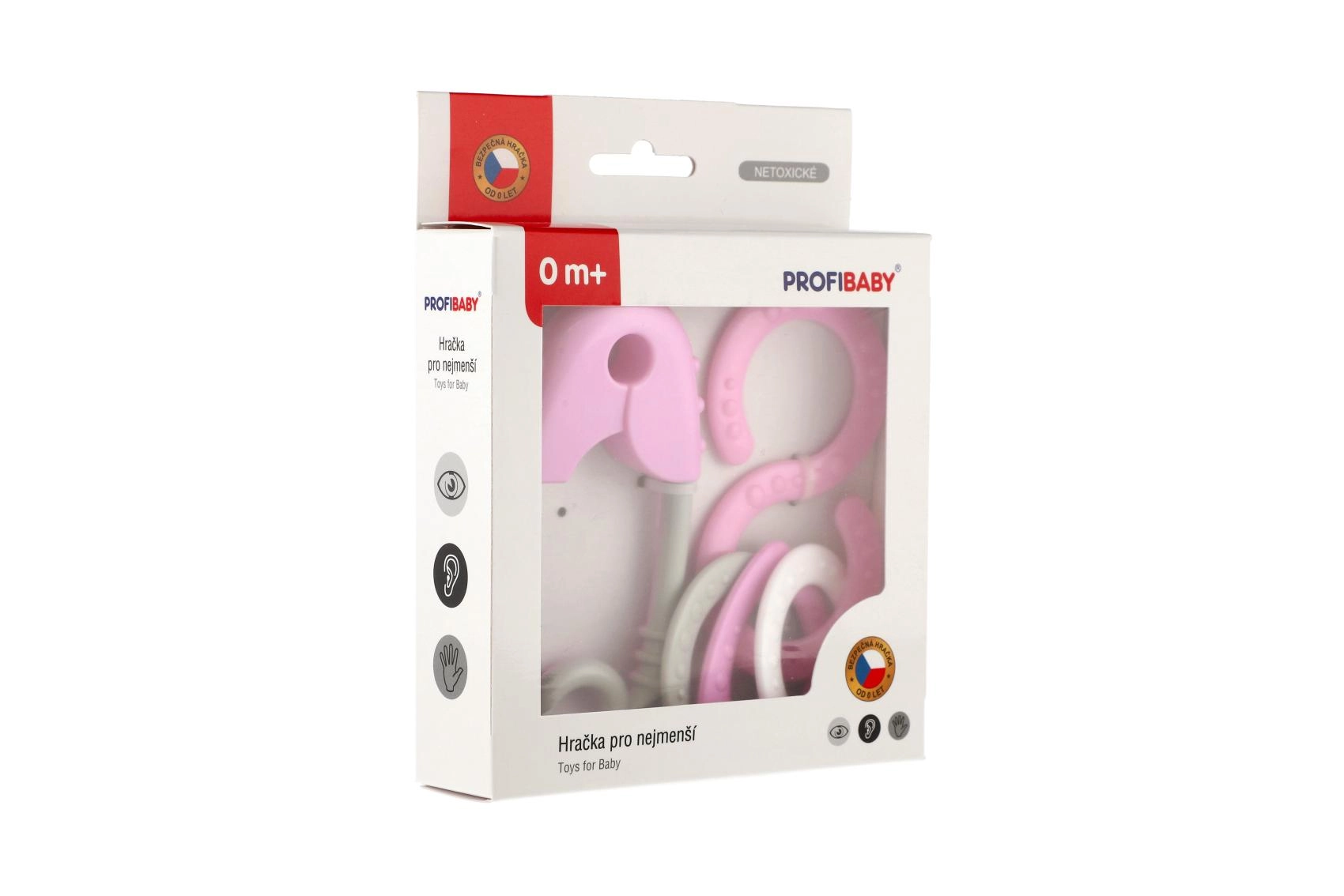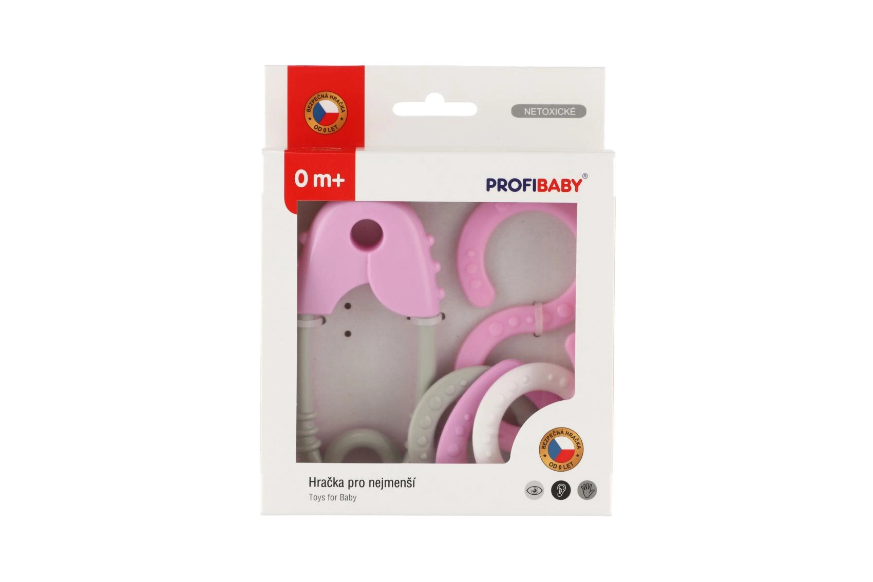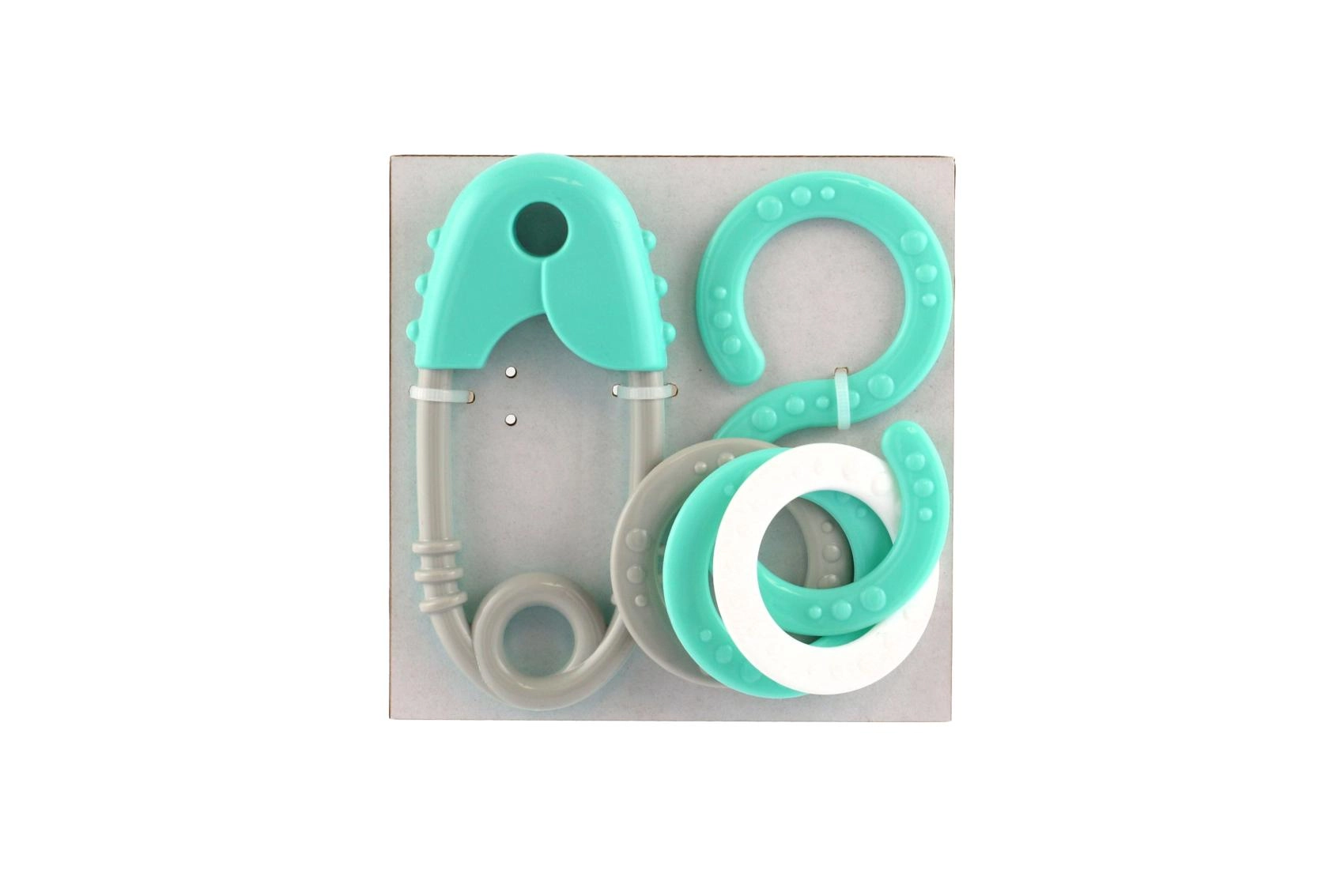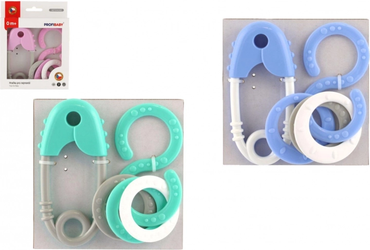 Šis plastmasas grabuļu komplekts ir paredzēts pašiem mazākajiem un palīdz attīstīt dzirdi, redzi un tausti. Pateicoties maigajai grabēšanai un patīkamiem pasteļtoņiem, tas dabiski motivē bērnus atklāt un rotaļāties. Drošības adatas forma (garums 12 cm) un astoņnieks ir ērti satverami un atbalsta drošu satvēriena treniņu.