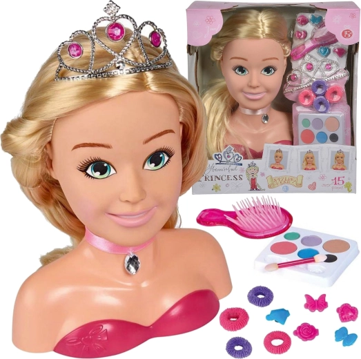 PRINCESS veidošanas galva, kronītis, birste, 5 sprādzes, gumijas, grima palete ar aplikatoru