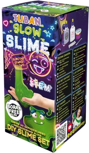 Tuban Super Slime komplekts piedāvā unikālu pieredzi slaima gatavošanā, kas spīd tumsā. Pietiek ievērot norādījumus, un jūs izveidosiet savu purpursarkanu slaimu, kas izskatās lieliski!