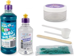 - PVA līme 500 ml, aktivators 250 ml, spīdumiņas 5 g, lāpstiņa, mērbļodiņa, konteiners