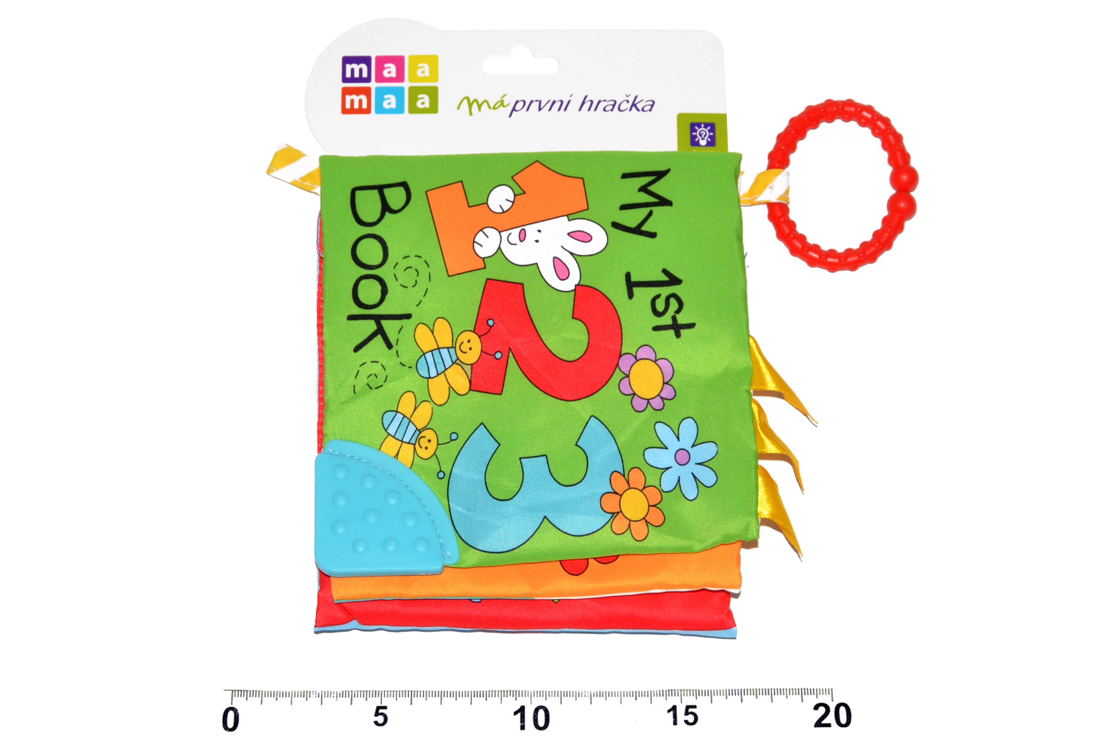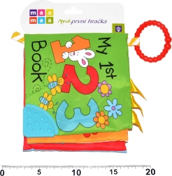 Praktiskais izmērs 15 × 15 cm un vieglā konstrukcija atvieglo satveršanu ar mazajām rociņām. Īpašā virsmas struktūra mudina kost, maigi masē smaganas un sniedz atvieglojumu pirmo zobiņu šķilšanās laikā. Grāmatiņa vienlaikus attīsta rupjo motoriku un veicina pareizu psihomotorisko attīstību.