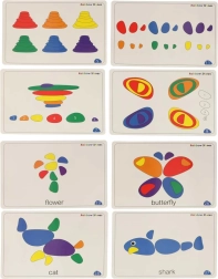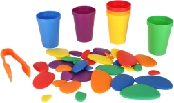 Krāsainie akmentiņi, trauciņi un uzdevumu kartes virza bērnus gan uz vienkāršām, gan uz sarežģītākām aktivitātēm: no krāsu šķirošanas līdz saskaitīšanai un rakstu veidošanai.